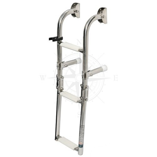 Опис Трап розкладний. Тип трапа — дуже вузький. Кількість щаблів — 3. Призначений для кріплення на кормовій частині. Виготовлений із неіржавкої сталі. Модель зі сходинками овальної форми в перерізі, що є зручнішим у використанні, порівнюючи з традиційними округленими. На верхній стороні, сходинки обладнані пластмасовим майданчиком в антиковзному виготовленні. Габаритні розміри: довжина 63 см; ширина 18 см; міжосьова відстань 16 см.